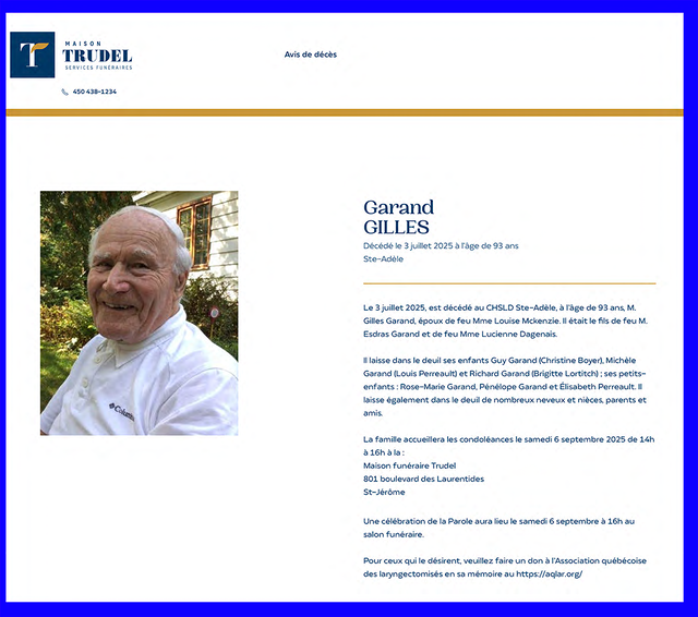 Avis de décès de Gilles Garand (vers 1932-2025) :