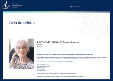 Avis de décès de Marie-Jeanne Garand (1934-2025) :