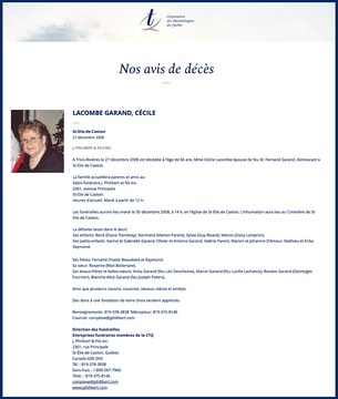 Avis de décès de Cécile Lacombe (1942-2008) :
